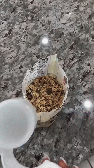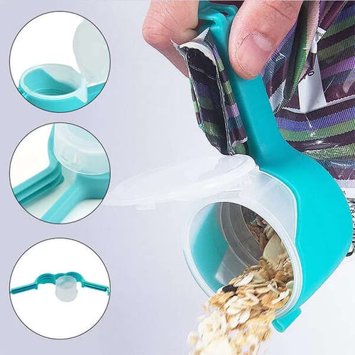 Mengubah kantong plastik menjadi wadah siap tuang, menghemat ruang kabinet tanpa memerlukan toples atau kontainer tambahan.