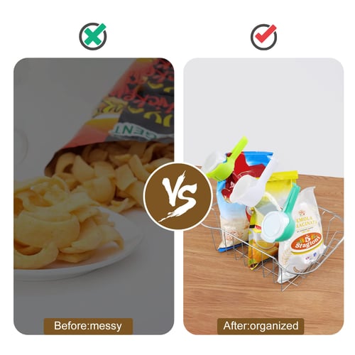 Penggunaan: Cocok untuk kantong snack, keripik, kopi, bumbu, makanan kering lain, serta membantu mengatur dapur lebih rapi